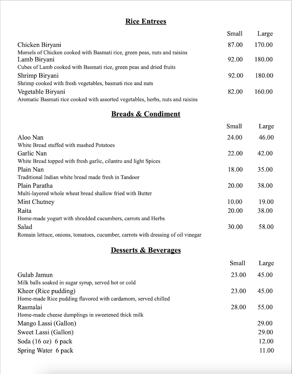 “ Had a wonderful meal tonight of chicken tikka, lamb korma, and saag paneer. Wonderful flavors, and the spice level was the perfect burn. The owner was very welcoming and friendly. Atmosphere in the restaurant is very inviting. We will absolutely be back to visit! ”
