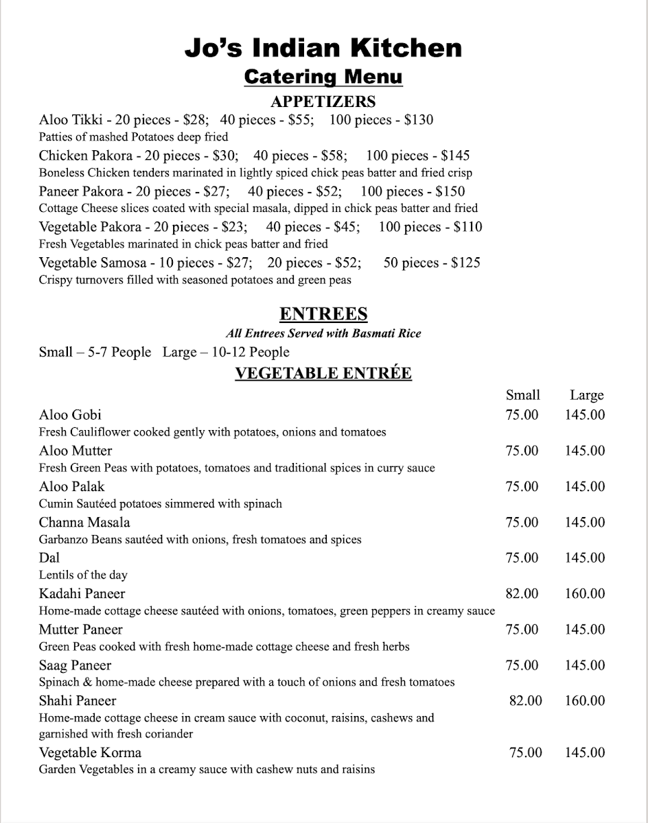 At Jo's Authentic Indian, located in the heart of Cambridge, MA, you are invited to experience the rich tapestry of Indian cuisine. Known for its traditional Punjabi dishes, the restaurant prides itself on authenticity and homemade flavors that transport you straight to India. Featuring an array of vegetarian and non-vegetarian thalis, each plate is a delightful explosion of tastes, with dishes like Mutter Paneer and Aloo Tikki Chat receiving rave reviews. The warm, inviting atmosphere and dedicated service by the staff enhance the experience, making Jo's not just a meal, but a comforting escape into authentic Indian culinary tradition.
